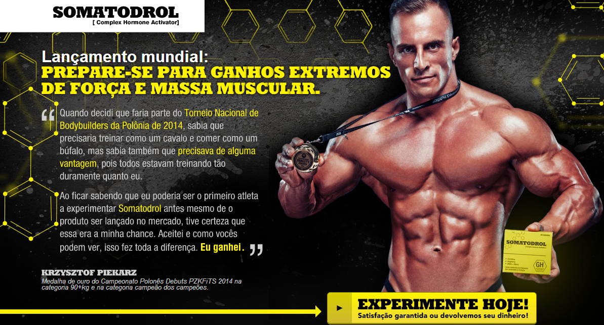 A testosterona e o GH são substâncias essenciais para aumentar a massa muscular e acelerar a queima de gordura e como você já deve saber, a venda de testosterona é ilegal no Brasil; porém a fórmula do Somatodrol chegou para oferecer ao seu corpo a matéria prima para que ele aproveite melhor a testosterona e o GH já produzidos naturalmente. Tudo isso de forma natural e sem os efeitos colaterais dos esteroides anabolizantes.